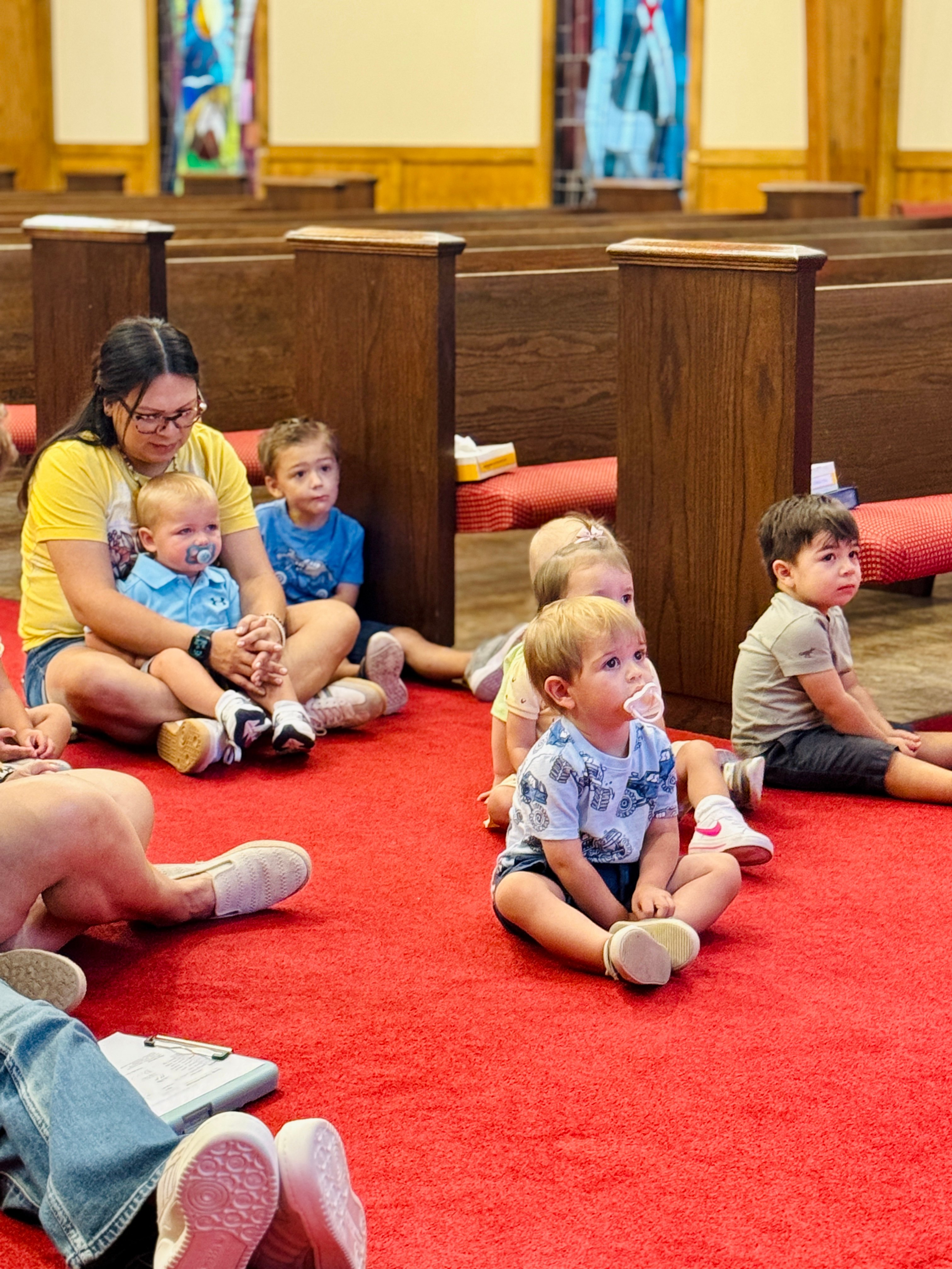 Chapel Time where children gather for prayer, singing, and Bible stories, nurturing their spiritual growth.